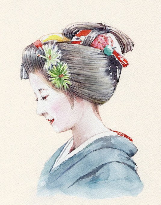 舞妓さん 横顔 水彩2イラスト No 無料イラストなら イラストac